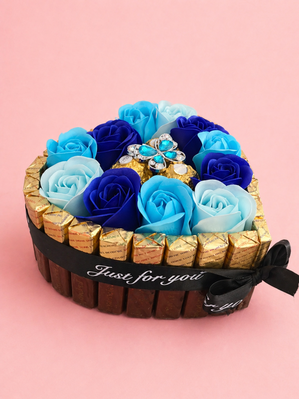 Ein besonderes, handgemachtes Geschenk, das Eleganz und Süße perfekt verbindet. ✨ Die Kombination aus stilvollen blauen Rosen und feiner Schokolade macht diese Box zu einem echten Hingucker.